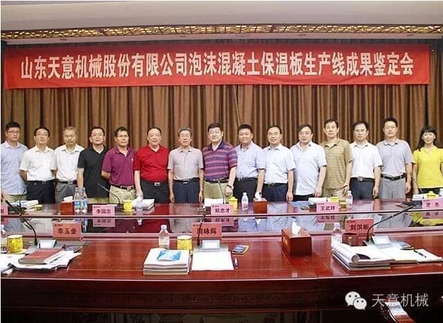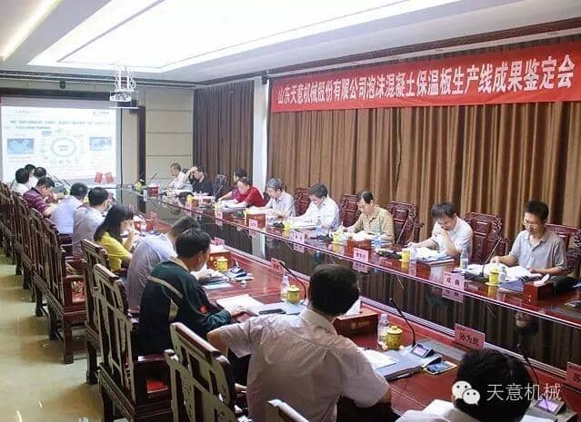 為加快產(chǎn)業(yè)結(jié)構(gòu)轉(zhuǎn)型升級,突出科技創(chuàng)新驅(qū)動企業(yè)發(fā)展,7月23日,由山東省機(jī)械工業(yè)協(xié)會處長李玉奎帶隊一行領(lǐng)導(dǎo)專家,蒞臨天意機(jī)械組織召開 "泡沫混凝土保溫板生產(chǎn)線” 和 “石膏墻板成型機(jī)” 科技成果鑒定會。濟(jì)寧市兗州區(qū)副區(qū)長周詠輝,集團(tuán)董事長劉洪彬、技術(shù)總監(jiān)陳維國等領(lǐng)導(dǎo)出席了本次會議。